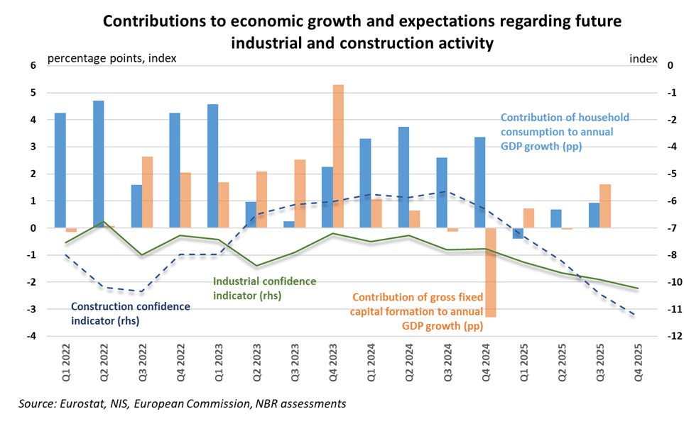 As early as a year ago, the NBR brought attention to domestic demand slowing down sharply and the economic growth rate falling below its potential, as a result of the changes in the fiscal and income policy stance to restore the fiscal position. The prospect of a technical recession was included in the forecast scenarios already at the end of 2025.